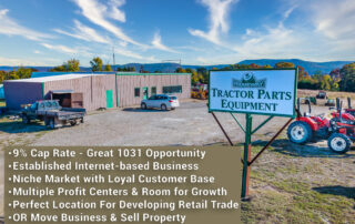 Ridgeway Tractor Parts, Solid Investment, 9% Cap Rate, Established Business, Well known website, internet orders, 7 Profit Centers, 6,488 sf Warehouse, showroom, shop, salvage yard, used equipment sales. 7+ acre lot with HWY frontage, 8,500 cpd.